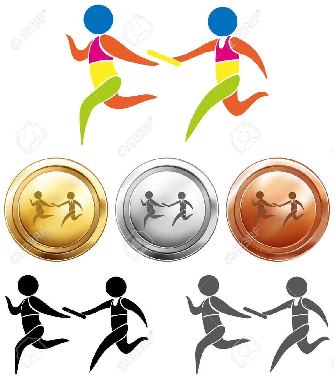 Les Medailles Sportif Avec Relais Course Illustration Clip Art